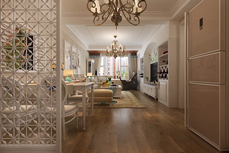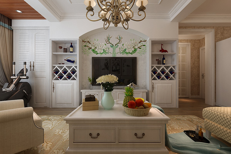 設想理念:本案界說為美式氣概,美式氣概對復古古樸的工具比擬偏心,天然、復古、披發著樸素氣味的色采是首選,美式氣概搭配經常用仿古藝術品停止特顯文明藝術氣味,被翻卷邊的古舊冊本,植物的金屬雕像等等,這些工具搭配起來顯現出艱深的文明藝術氣味。是以凈水磚墻最能代表美式氣概,其古樸天然的色采質感廣受愛好,家具色采還應當與空中資料相調和,能夠在室內部分加鋪地毯,以和緩冷硬的感受。