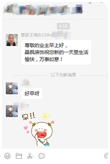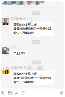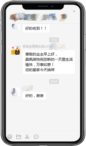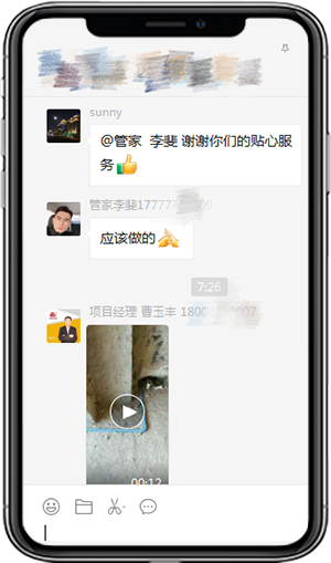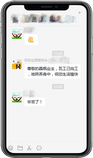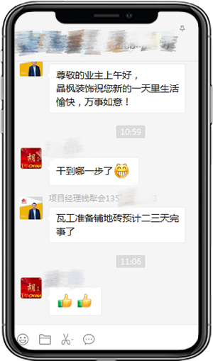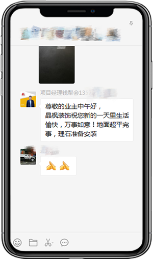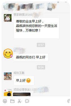 讓您深居簡出便能夠經由過程微信群隨時領會您家的工程進度,并且只需您有任何題目,都能夠在群里發問,